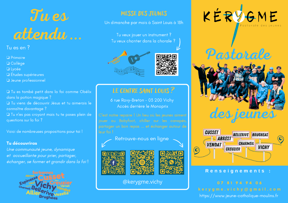 Liens vers le site du diocèse et toutes les actualités pour la pastorale des collégiens et lycéens : https://www.jeune-catholique-moulins.fr/