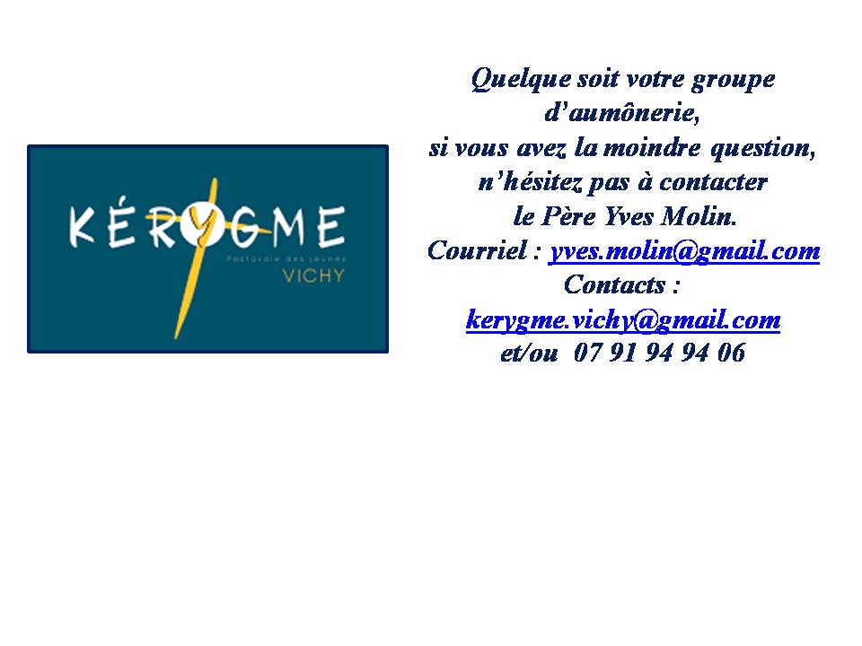 Nous serons accompagnés par le Père Y. MOLIN. Si vous avez des questions ou souhaitez plus d’informations vous pouvez contacter les personnes suivantes :